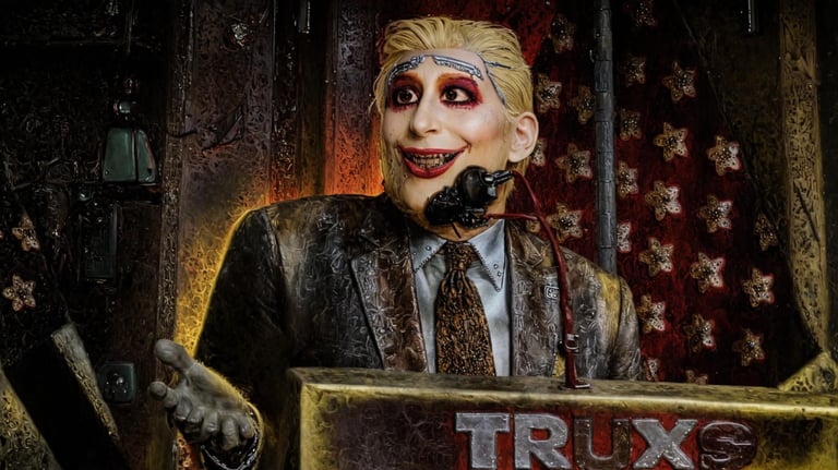 Morning sunlight streamed through the gilded curtains of the presidential bedroom, bathing the room in an almost holy glow. Donold J. Grump blinked groggily, his head pounding like a jackhammer on Fifth Avenue. His silk pajamas clung to him awkwardly, as though he’d been sweating through some unimaginable ordeal.
