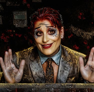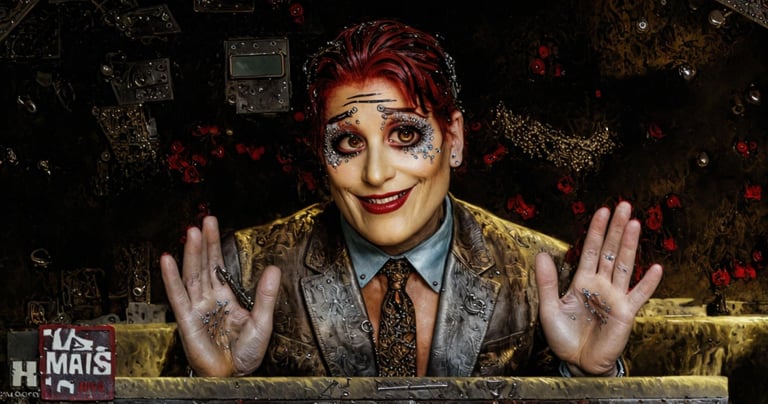 After the toast, Grump rose from his throne and began moving through the crowd, Sparky perched on his shoulder like a jewel come to life. As Grump approached the Faux News group, Shawn straightened his posture, his signature grin firmly in place.